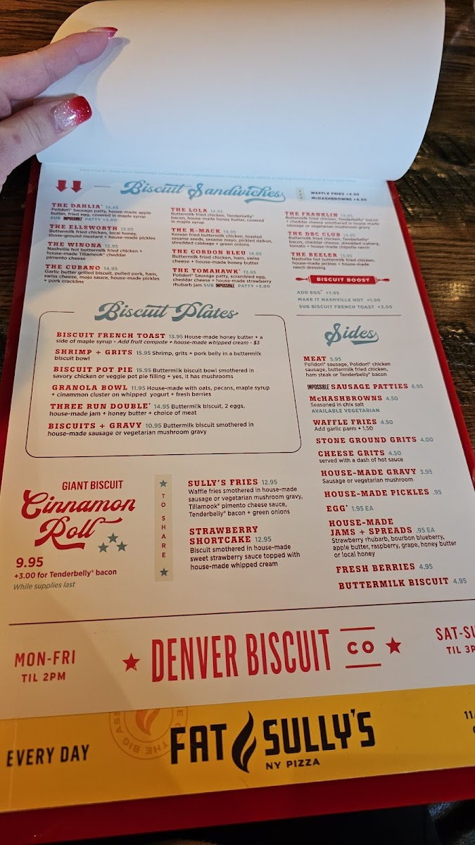 The restaurant seamlessly merges two beloved culinary concepts: mouthwatering biscuit creations from Denver Biscuit Co. and iconic New York-style pizza from Fat Sully’s. Imagine stepping into a whimsical space filled with bright colors and inviting decor, where the smell of fresh-baked goods mingles with the rich aroma of zucchinis and pimentos from expertly curated dishes.